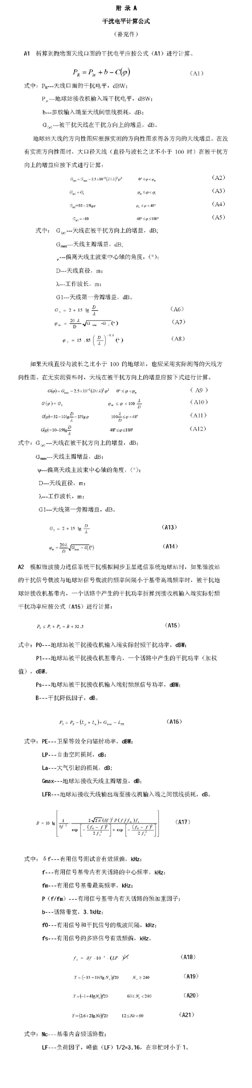 B1.3.3 天線口面處干擾信號電平PR的折算應按公式(B1)進行計算。